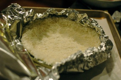 Make the crust: Preheat oven to 350 ˚. In a food processor, process butter and 1/3 of coconut until mixture forms a ball, 1 to 2 minutes. Transfer to a medium bowl. Sprinkle remaining 2/3 coconut over mixture, and combine with your fingers. (which I love to do)
