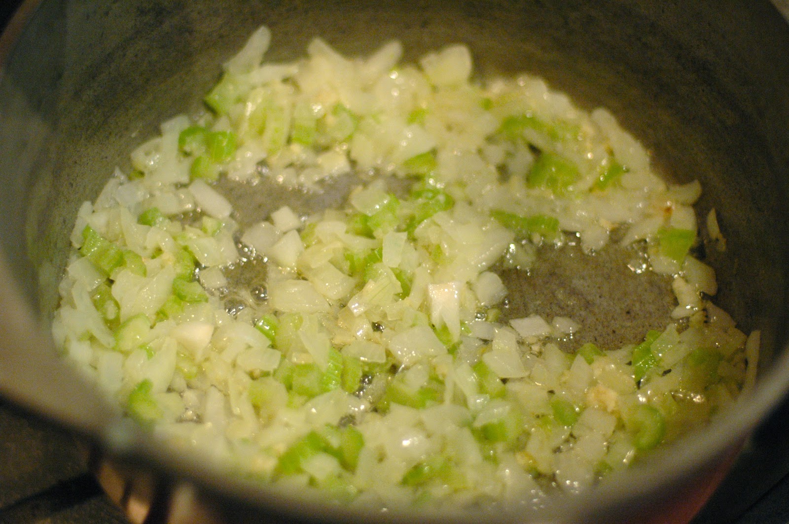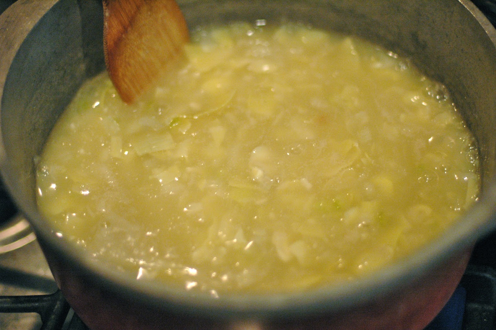 Once home, I started looking in cookbooks and searching online for soup recipes with these ingredients.  I found one and played around with it and I think it is really good.  I wish I could go to the Midtown Cafe and try their soup again, for comparison sake.  But I can’t afford to go there when it’s not a business dinner.