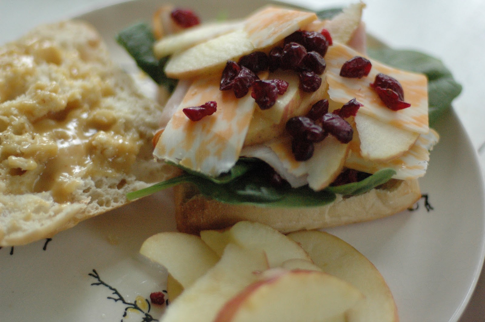 It would be a lovely soup for the first course of a dinner, or great with a yummy sandwich like this one (turkey, apple, spinach, co-jack, craisins, honey mustard on Ciabatta).  It is great to a enjoy as leftovers for lunch or an easy second-day dinner.