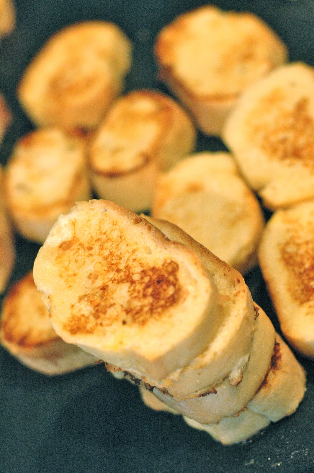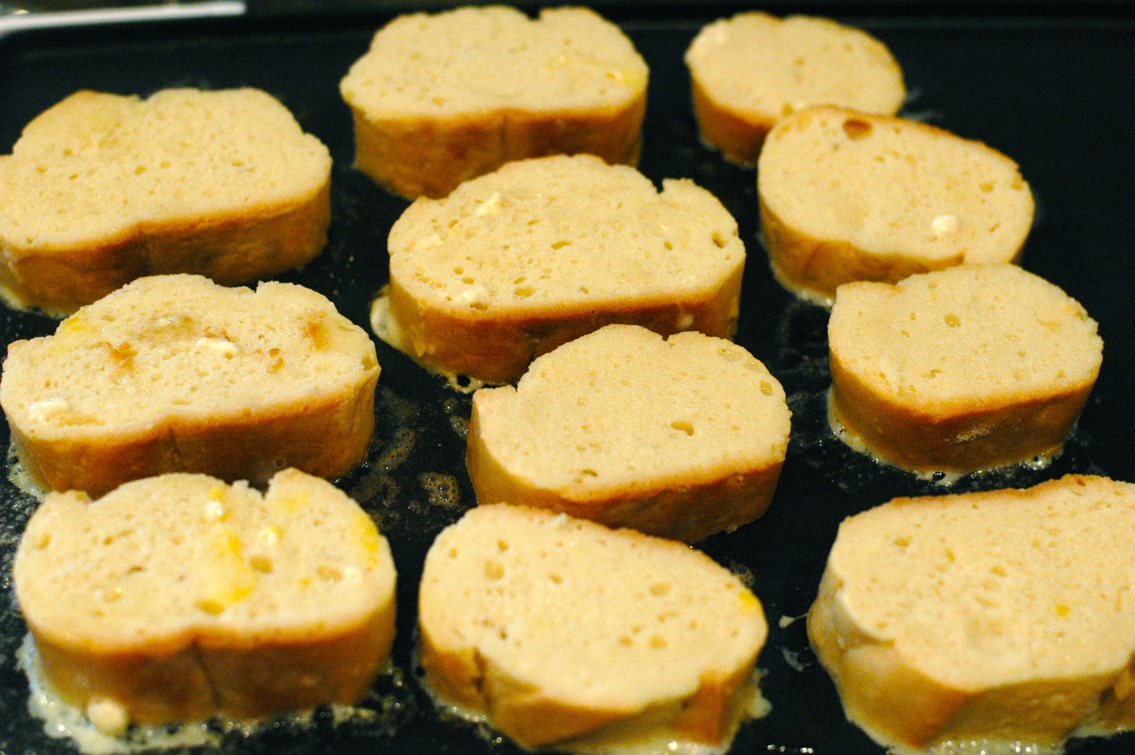 8-12 slices firm, day-old European-style bread, such as French or Italian, 3/4 inch thick