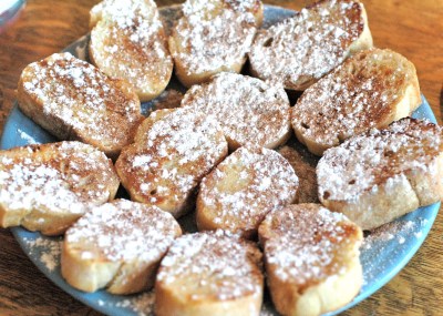 What a treat to see your smile again and as this is a blog and it is about French Toast, not Belmont or me, I will comment for real and say…I LOVE breakfast for dinner and our family had French Toast for dinner just last week. I also love to bake bread and I baked a loaf with cinnamon and nutmeg in the batter specifically to make French Toast with. I so enjoy playing in the kitchen. Good to see you!