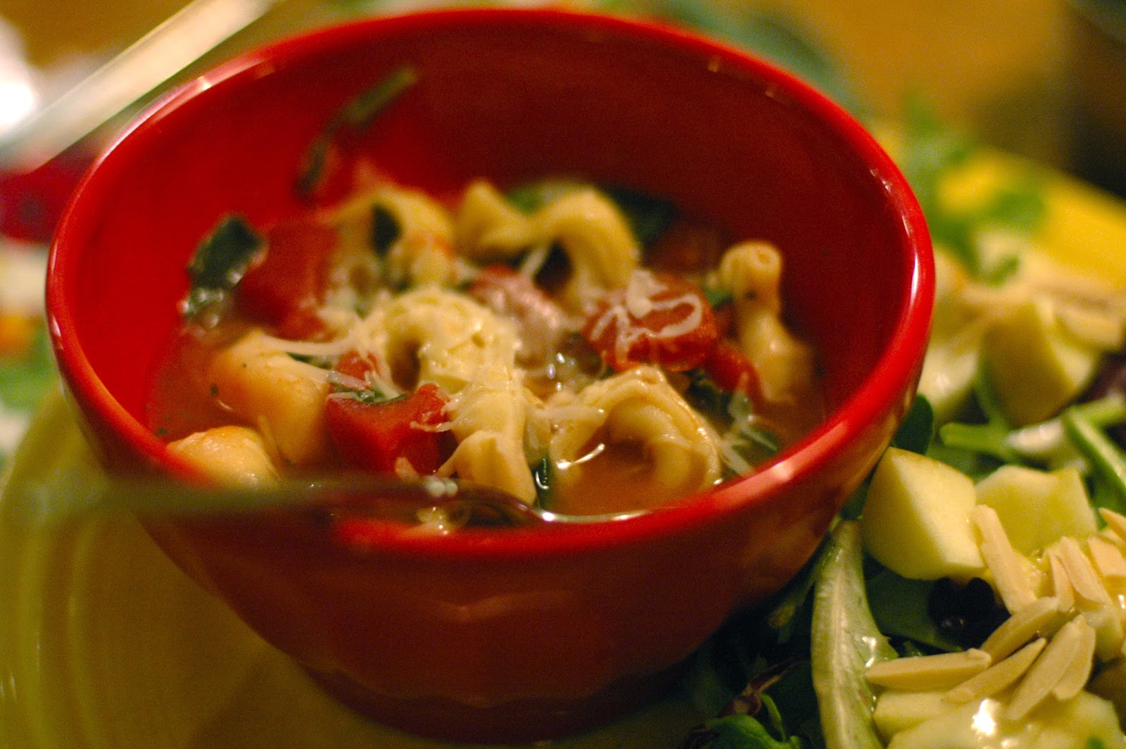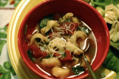 You really can’t go wrong with this recipe. You can add to and take away from and make it the way you like it. You can use meat-filled tortellini, you can add beans to the soup, or use cheese-filled and then add hunks of Italian sausage or turkey/chicken sausage if you’d like. You can add other veggies chopped and sauteed; or add more diced tomatoes or less spinach. Tweak it and make it your own.