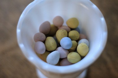 RESULT: they didn’t mess up your hands, the eggs stayed in, but the one complaint I got from my testers was that candy eggs were “stuck” in the chocolate and you couldn’t lift them out to eat (they had to be eaten with the nest).
