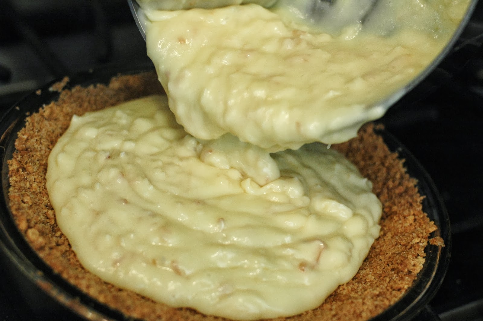 Spoon the filling into the prepared crust and press a sheet of plastic wrap directly on the surface. Allow to refrigerate at least 3 hours to firm the filling.
