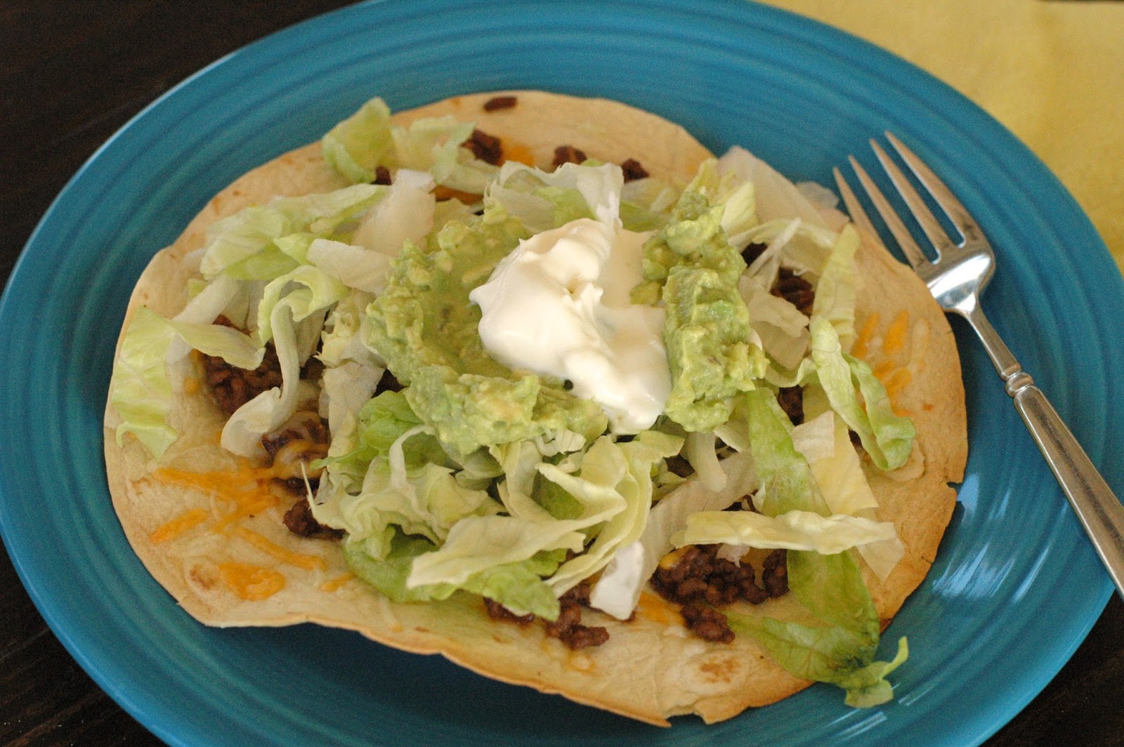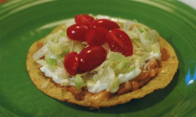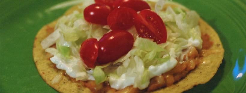 A favorite meal lately in our house has been Tostadas. People define them differently, but basically- in our home – they are a flat, open faced taco pile. I don’t know if you make them, but I like that they are a change of pace from soft tacos and burritos and yet a lot easier to fill and eat than hard shell tacos. AND they can be eaten with your hands (forks are optional).