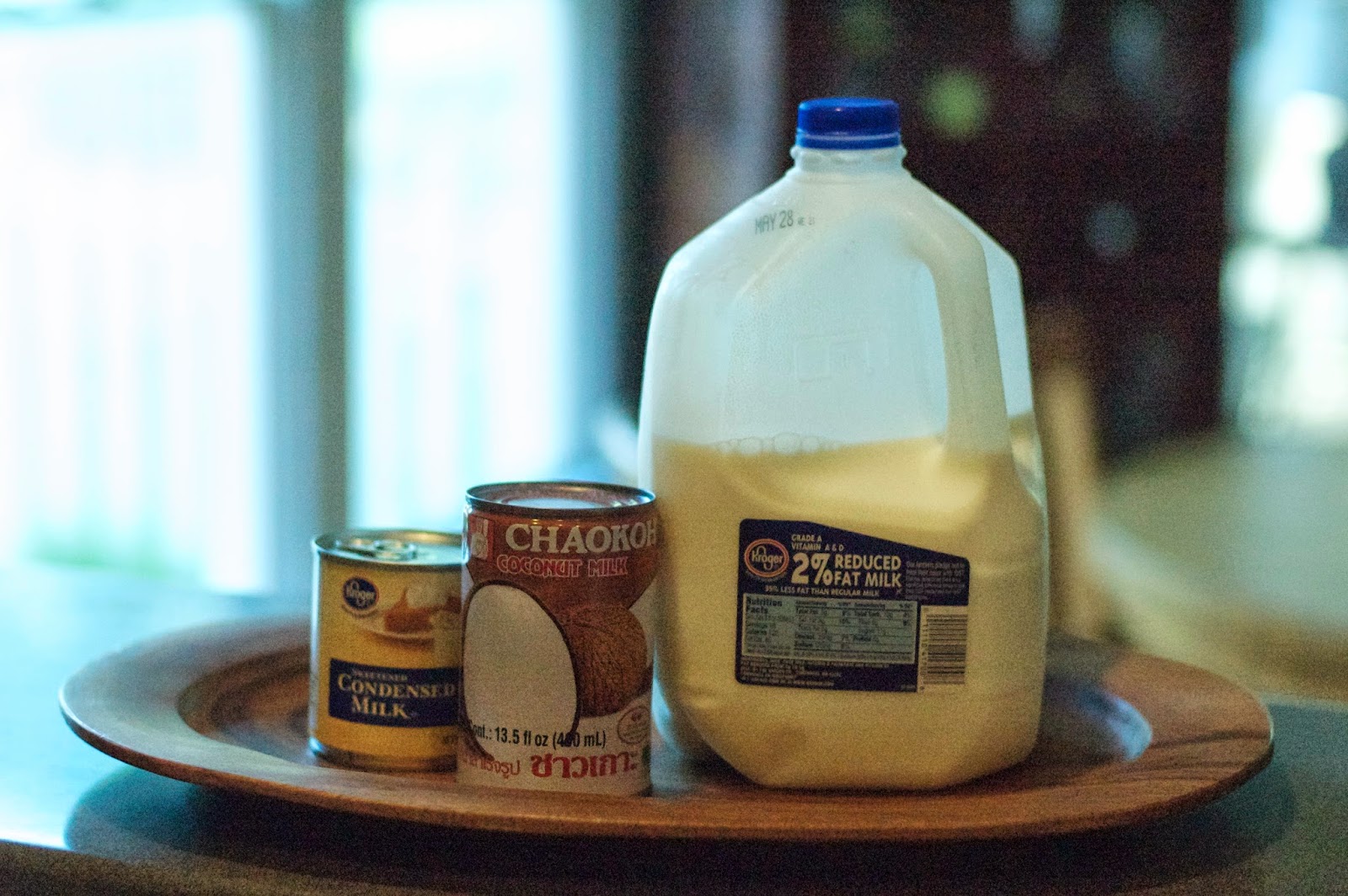 Stir the 3 milks together. Use a whisk, if needed, or a fork, to make a smooth, consistent texture.