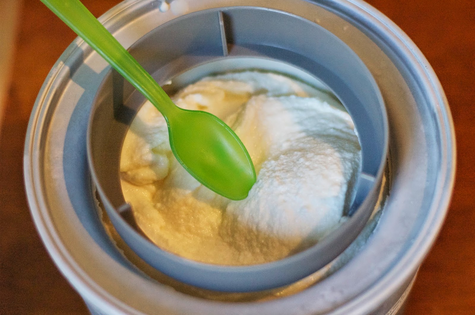 Pour into ice cream maker canister and follow directions on your ice cream maker for churning/freezing.