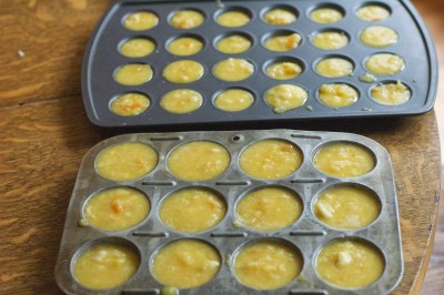(If they don’t easily come out, run a table knife around the edge and/or pour room temperature water over the back side of the pans. I flip muffin pans over on top of a baking sheet and pour water over, so that if one falls, it falls on the pan.) You can also use paper cupcake liners.