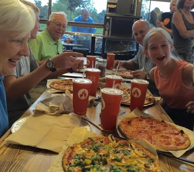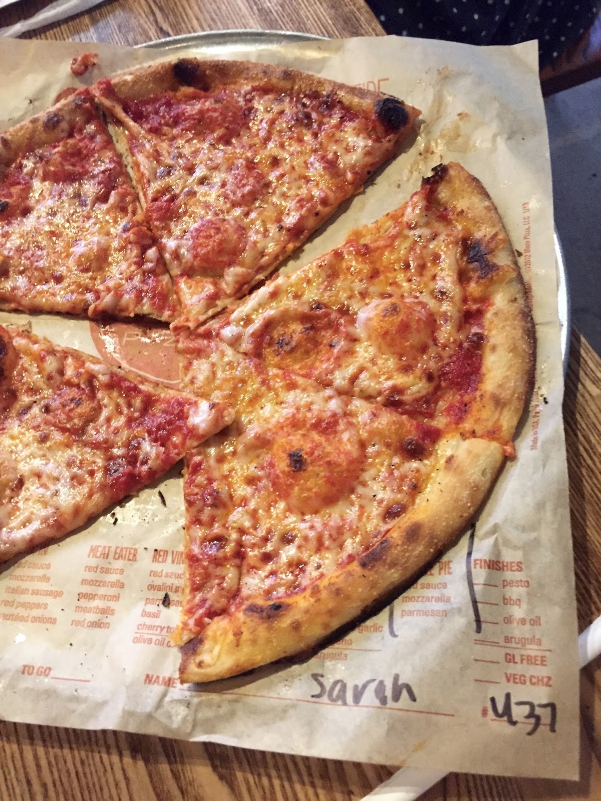 Blaze Pizza. It’s a really fun concept. It’s individual pizzas made to order on the spot. You walk through the line, like at Subway or Chipotle, and tell them what you want on it. You can choose one of their specialty concoctions or make your own custom pie. They then stick it in their super-hot ovens and flash bake it. We all gobbled up our pizza and enjoyed it so much. (My only complaint is that if each person gets an entire pizza, it quickly gets expensive).