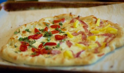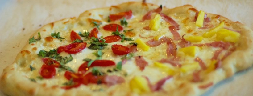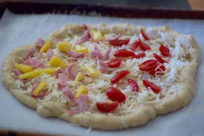 Fruit: not just pineapple! We had an incredible Peach pizza (with no red sauce) at Dave’s birthday dinner last month and another time we had fig on a pizza!