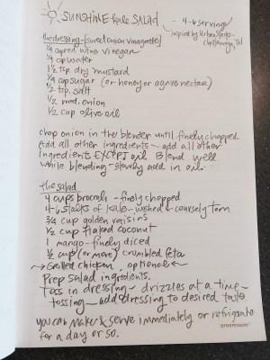 Prep salad ingredients (washing, chopping, etc.) Add diced chicken if including it.