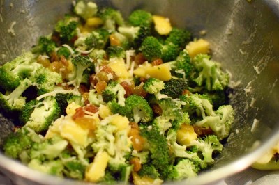 You can make it ahead of time or serve immediately.  If serving it later, you might want to stir, taste, and add a touch more dressing before serving. Tweak as you wish- add, delete or alter portions to your liking.