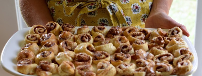 As much as I love cinnamon rolls, I often do not have the time to devote to yeast-based cinnamon roll making! So, these quick little treasures are a good stand in! They are made with canned refrigerated crescent rolls and are therefore super fast and easy while still being flaky and tasty.