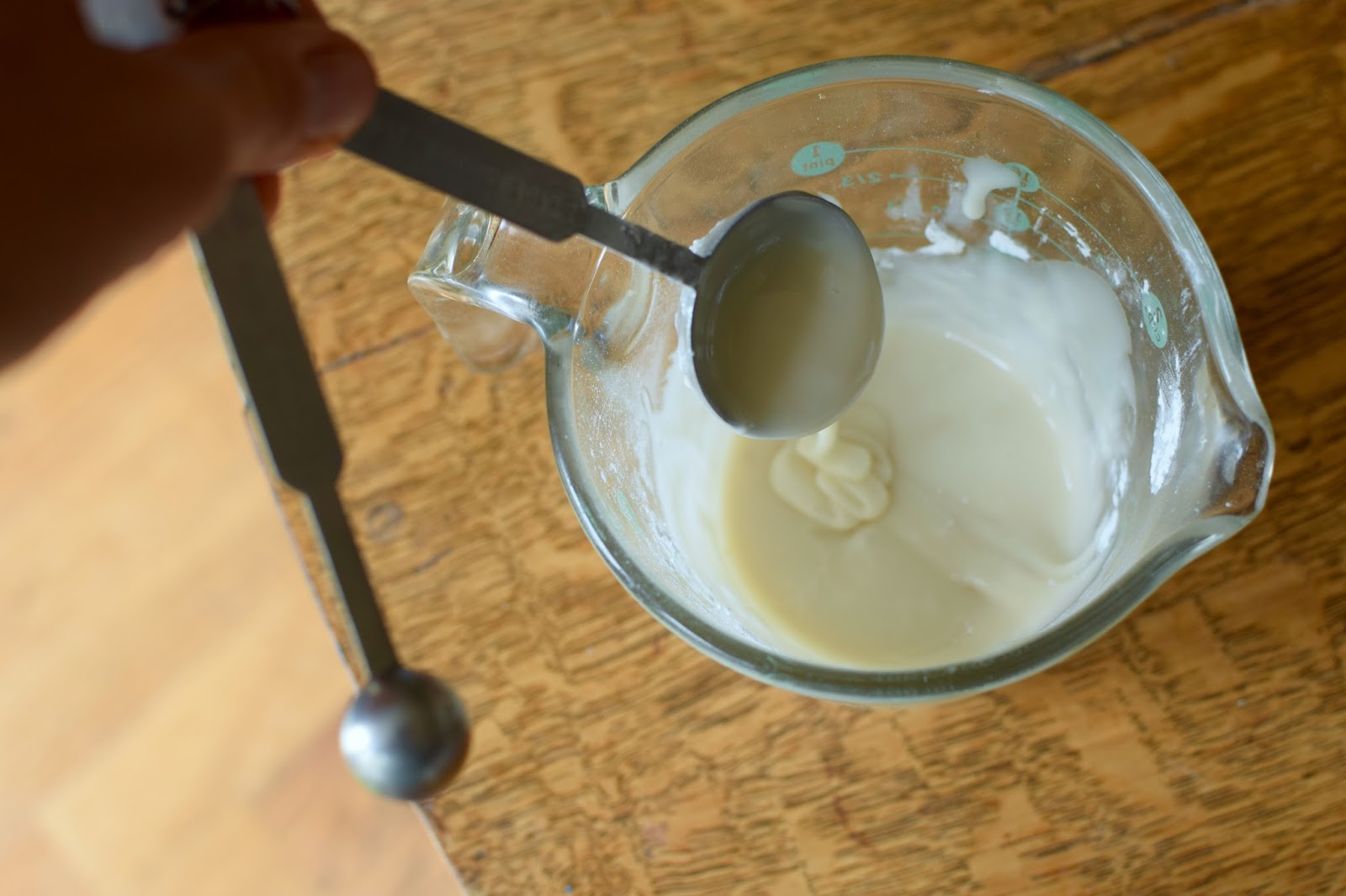 A spoonful or so of milk (or enough to achieve desired consistency)
