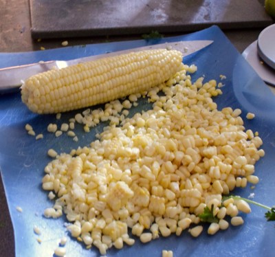 2-3 cobs of corn (depending on how big they are)- steamed or microwaved and cut off the cob