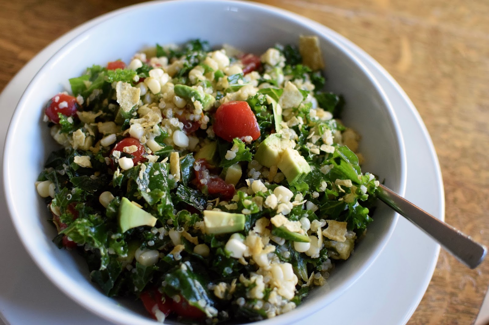 The pools are closed now in our community for the most part, as Labor Day has passed, but the Southwestern Kale Salad is still going strong. Hope you find it as tasty and satisfying as we have!