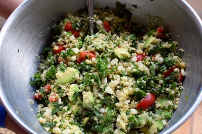 This salad is versatile and one of the benefits of kale is that it is a sturdy green, and therefore can be made ahead of time! (Just stir in the avocado right before serving.)