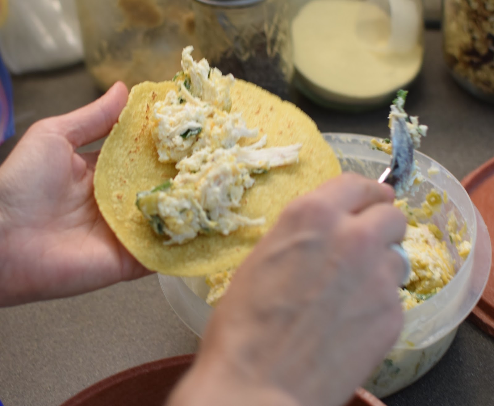 The Verde Chicken Enchiladas were inspired by The Raines boys (young friends from church). I was bringing a meal for their family when they welcomed home a new brother this summer and they requested enchiladas. I thought I would fill them with chicken and wanted a cream sauce that wasn’t complicated but was fresh and tangy, made with verde salsa. I poked around and came upon this recipe from one of my notebooks (my Pinterest before there was Pinterest notebooks that I wrote about HERE). I believe it’s from Southern Living many years ago (based on what I remember about the font of the torn out magazine page). They were so simple and yummy. We made a trial run first and I used a Hatch Green Salsa from Trader Joes because, well, the packing was cool. I’m a sucker for great packaging. But we decided it was too spicy for kids. So next time I went for a basic Salsa Verde.