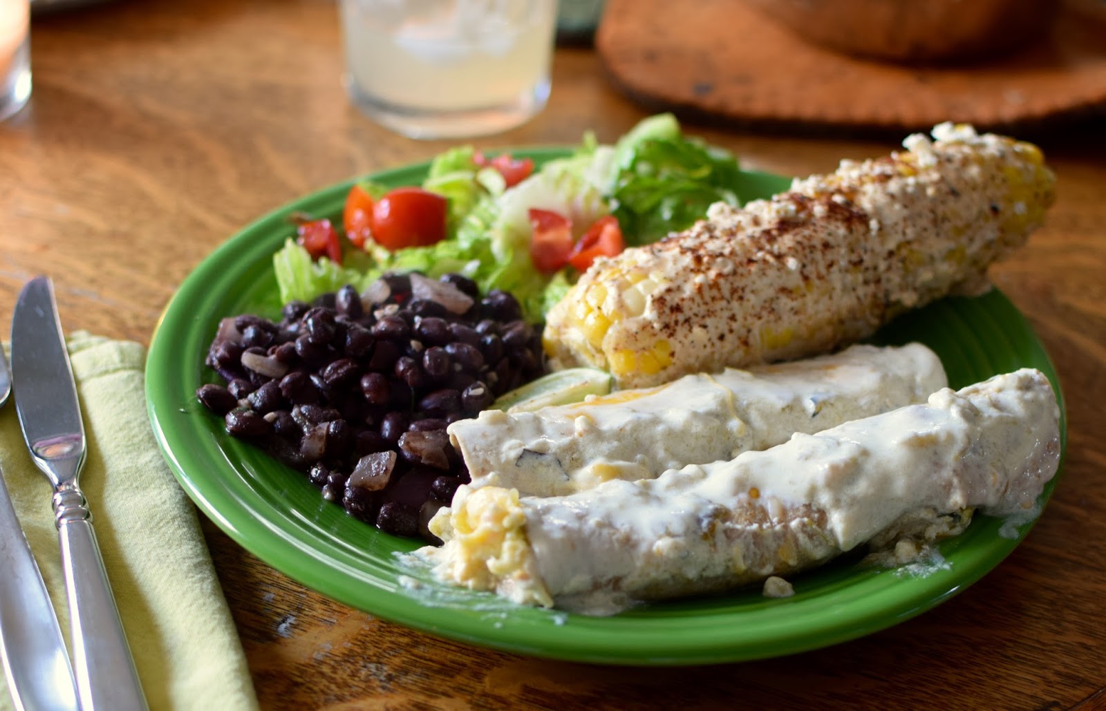I think the salad is a nice accompaniment to the rich, creamy corn and enchiladas!