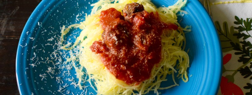 DSC_1057Last winter I was having birthday brunch with Dave at the lovely Steadfast Coffee and we ran into my fellow social worker/professional acquaintance, Cameron. She’s so cool. She’s a social worker, yoga instructor, rock climber, a true beauty.  The kind of person you want to be like. I had a stack of books, including some cookbooks on our table and it sparked a conversation about cooking as we stood there chatting.  We discovered our mutual love for the kitchen. (I know… and she is a cook!)  I asked her a “must make” recent recipe of hers and she instantly suggested these falafel meatballs with spaghetti squash. She sent me the link to the recipe.  I made it a few weeks later and we all loved it. I have made the recipe a couple of times since, so I think I’ve gotten my groove enough to share it with you, with the tips I’ve garnered along the way.