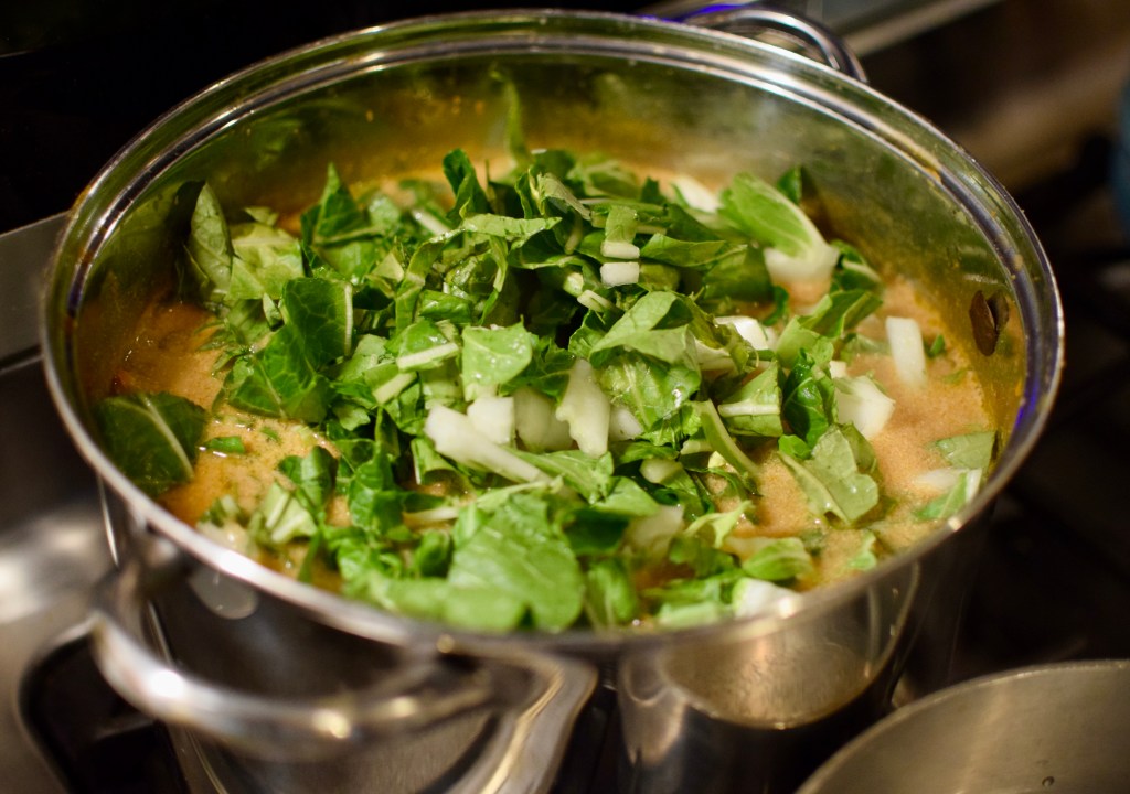 We have made a couple of tweaks to this recipe, the main one being that we switched out Bok Choy for the Spinach (as it is more sturdy and less slimy- and is better for Dave’s sensitivity to calcium oxalate). If you have a Trader Joe’s nearby, I highly recommend you buy their frozen cubed minced garlic and minced ginger! They are so convenient and affordable.