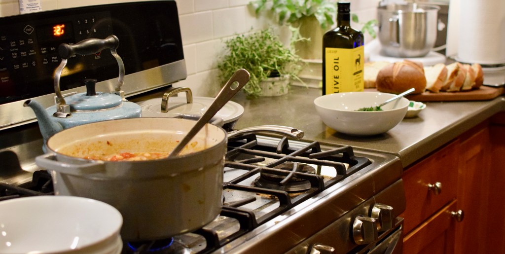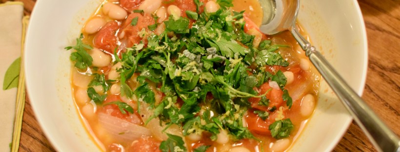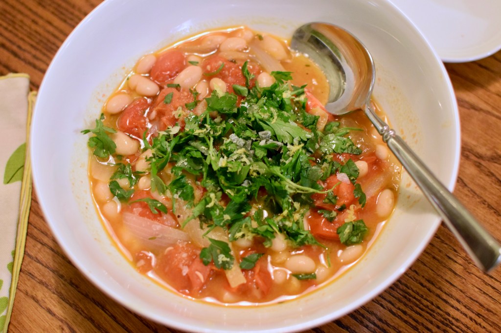 It’s called stew. I would call it soup. Maybe because it’s thicker it’s named “stew”. It’s from The New York Times, so you know it has to be good. It has a chopped parsley and lemon zest topping that you swirl in when served that is delightful!
