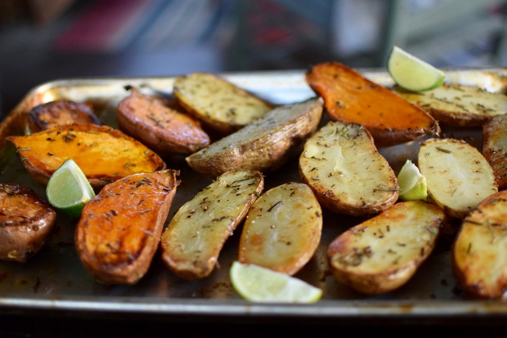 When serving the Idaho potatoes, my family likes topping them with cheese and sour cream! For the sweet potatoes, they need nothing additional- other than the lime juice, which is a delightful surprise.