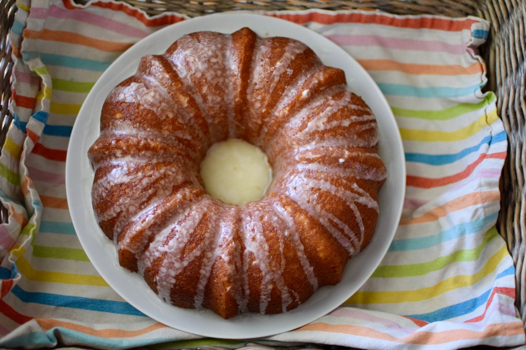 Make the glaze by combining the powdered sugar and lemon juice in a bowl, mixing with a wire whisk until smooth.  Pour over the top of the cake(s) drizzling down the sides.