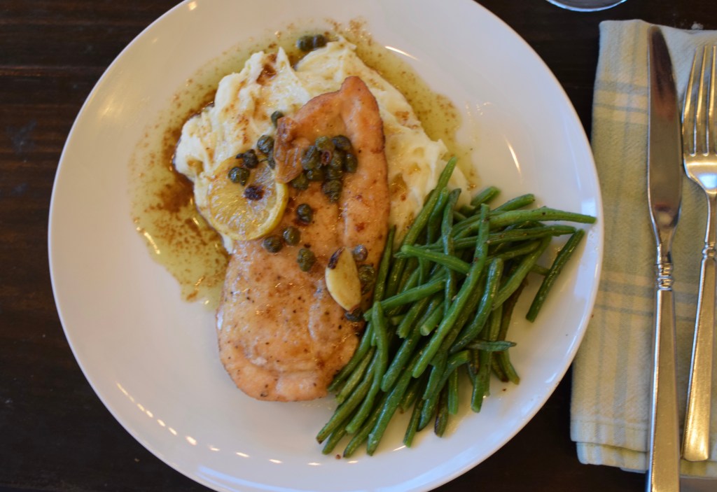 While the recipe is simple, timing really matters! We have tried making it twice and have learned some things that help manage the many tasks. Having all of your ingredients prepped and near, and planning the preparation of the other parts of the menu (green veggie or salad, potatoes or pasta) is of great importance! We made it this weekend with garlic mashed potatoes and haricots verts (skinny green beans). It was delicious! We cleaned our plates! Actually, Dave may or may not have licked his plate.