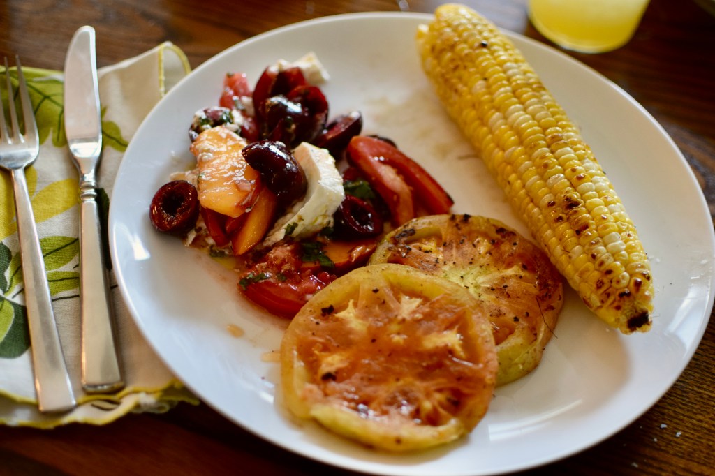 (In these photos we served it with grilled corn and the most incredible summer cherry-peach-tomato-burrata salad I wrote about here.)
